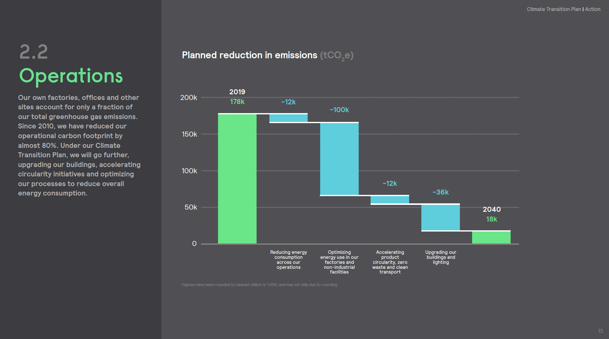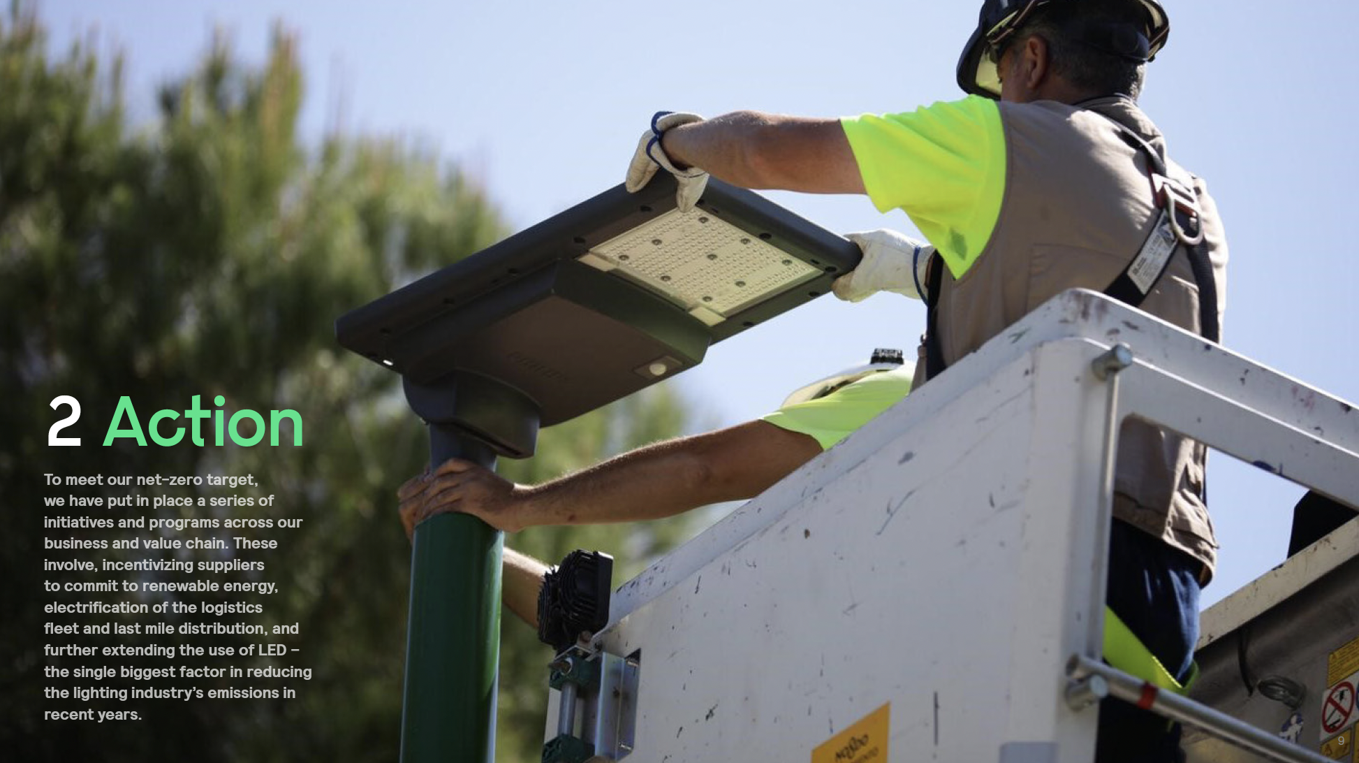 - Action: Detailed the specific initiatives across their value chain, including advancements in energy-efficient LED technology and the transition to renewable energy